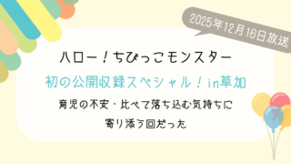 Eテレ ハロー!ちびっこモンスター|2歳差育児がつらい… 上の子が下の子を嫌がる理由は?てぃ先生が教える“心を満たす育児” 2025年12月9日に放送された「ハロー!ちびっこモンスター」。今回のテーマは、兄弟・姉妹育児をしているママパパなら「こ... 2025.12.09 2025.12.25 Eテレ