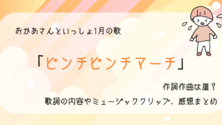 Eテレ おかあさんといっしょ1月の歌「ピンチピンチマーチ」作詞作曲は誰?歌詞の内容やミュージッククリップ、感想まとめ 毎月ユニークな楽曲が登場する『おかあさんといっしょ』の月うた。2026年1月の月うたのタイトルは「ピンチピンチマーチ」。... 2026.01.05 Eテレ