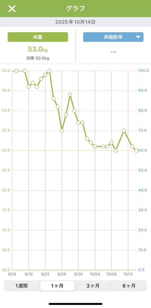 あすけんを始めて2週間ほど経ったころから、少しずつ体重に変化が出始めました。