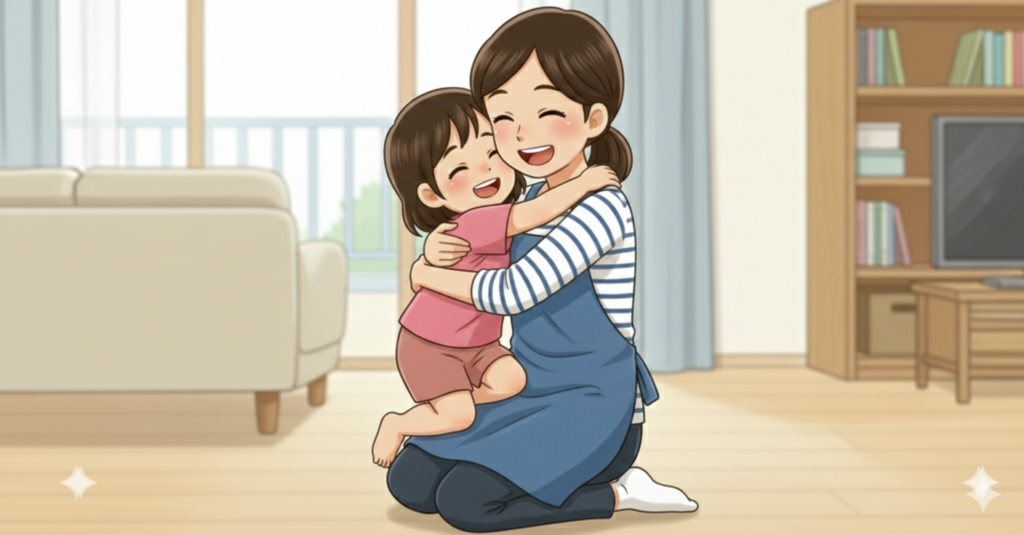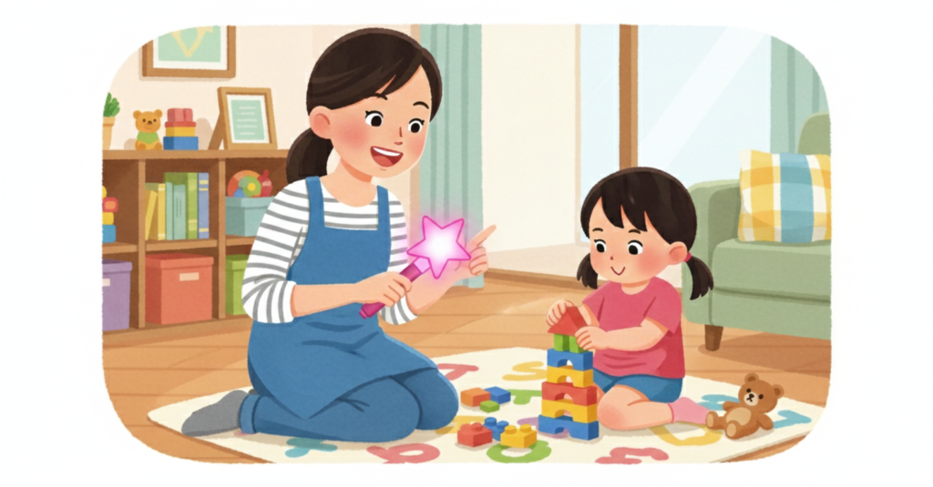 少し一緒に遊ぶ → 「見てもらえた」という安心感 → 自分でも遊べる→ ママは家事へ